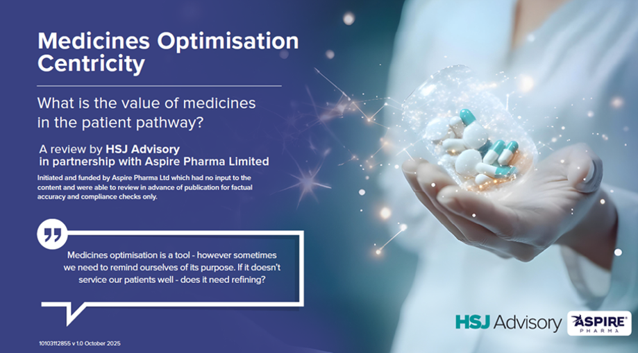 Initiated and funded by Aspire Pharma, Medicines Optimisation Centricity reflects a series of workshops ran and facilitated by HSJ Information (formerly Wilmington Healthcare), bringing together key NHS and pharmacy stakeholders to explore the most pertinent questions in medicines optimisation.
